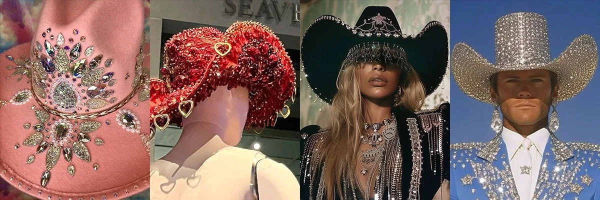 Let’s all unify with a punchy, pimped cowboy hat, whether Cattleman or Cutter, Diamond or Dakota, Derby or Stetson; a sea of sexy shade ;)
